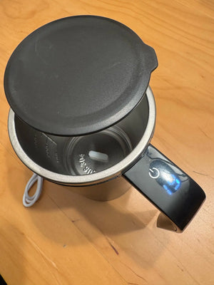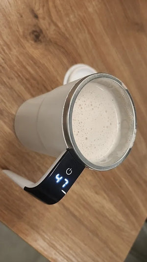 Charge with the included USB-C cable. A full charge provides several uses depending on stirring length, perfect for daily morning routines and office use.